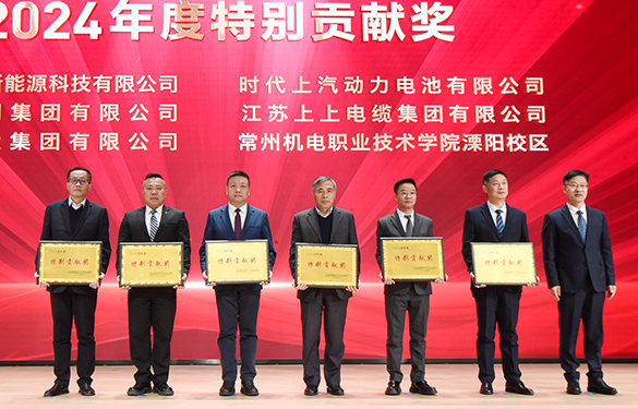 總經(jīng)理丁志鴻(右三)上臺領取2024年度溧陽高新區(qū)特別貢獻獎