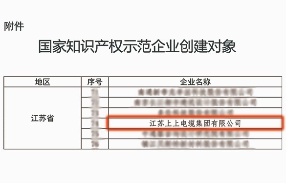近日,國家知識產(chǎn)權局正式發(fā)布《關于國家知識產(chǎn)權強國建設示范創(chuàng)建對象評審結果的公示》,江蘇上上電纜集團憑借卓越的知識產(chǎn)權創(chuàng)造能力、完善的保護體系及顯著的成果轉(zhuǎn)化成效,成功入選“國家知識產(chǎn)權示范企業(yè)”!