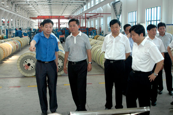 7月11日,邳州市委書記馮其譜、市長王強率領的黨政代表團一行來江蘇上上電纜集團參觀考察,江蘇省委第六巡視組組長邢元新、溧陽市市長蘇江華等領導陪同考察,上上集團副總經理滕峰等陪同代表團一行參觀了西廠區(qū)特種電纜生產基地。