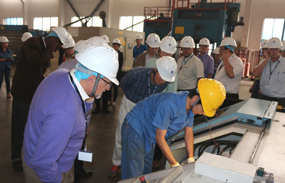 10月16日,“國際原子能機構(gòu)(IAEA)核電廠低壓電纜鑒定、狀態(tài)檢測和老化管理協(xié)調(diào)研究項目(CRP)”第三次國際會議在上海召開期間,11國21名IAEA與會核電纜專家齊聚上上進行交流參觀。交流會上,江蘇上上電纜集團董事長丁山華熱情致辭,副總工程師、核電項目經(jīng)理梁福才就三代核電AP1000殼內(nèi)電纜研發(fā)情況作重要發(fā)言。會后,專家們先后參觀了上上西廠區(qū)特種電纜分廠及超高壓分廠,對上上廠房之大、設(shè)備之精良表示震驚。在超高壓CIMS集控中心,專家們對上上這套目前世界絕無僅有的集控系統(tǒng)嘆為觀止,并主動要求在此合影留念。