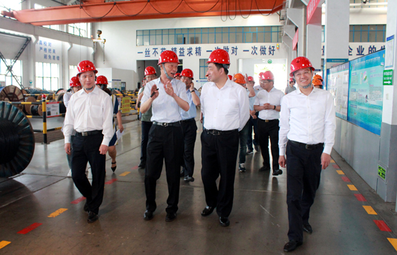 6月1日,常州市委書記汪泉一行來上上電纜西廠區(qū)特種電纜生產(chǎn)基地參觀調(diào)研,溧陽市委書記蔣鋒、市長徐華勤、市委常委、中關(guān)村產(chǎn)業(yè)園黨工委副書記莊松年、集團董事長丁山華、總經(jīng)理丁志鴻等陪同調(diào)研。