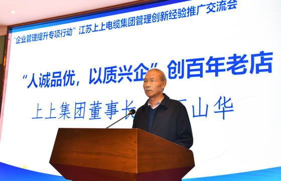 中機企協(xié)孫伯淮理事長在總結講話中,用了“上善若水”“大道至簡”2個詞以及“創(chuàng)新”、“質量”“規(guī)?!薄把b備”“人才”“管理”“品牌”7個門檻高度總結了上上發(fā)展之道和競爭優(yōu)勢。同時,孫理事長強調,國際一流的管理造就世界一流的企業(yè),管理的突破要比技術和產(chǎn)品創(chuàng)新更能創(chuàng)造持久的競爭優(yōu)勢。管理優(yōu)秀的上上電纜不僅造就了自己,還能給眾多行業(yè)企業(yè)帶來楷模意義,從而強有力的推動國家競爭力的提升。丁山華董事長率領上上電纜幾十年如一日,聚焦主業(yè)、穩(wěn)扎穩(wěn)打的戰(zhàn)略定力,以及博大的胸懷,毫無保留的無私分享管理經(jīng)驗,是當之無愧的中國優(yōu)秀經(jīng)營管理者,他的示范作用必然會帶動更多的企業(yè)持續(xù)健康發(fā)展,促進我國早日實現(xiàn)制造強國夢。