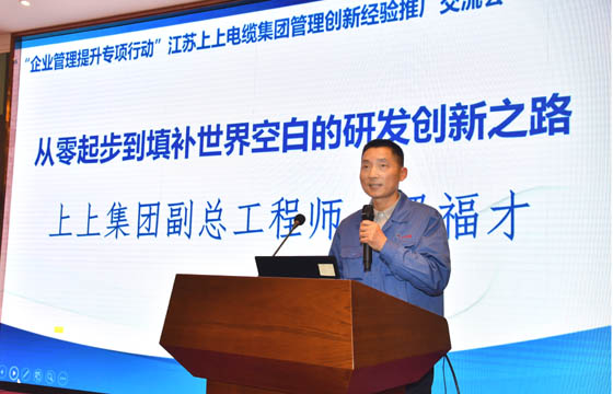 交流會上,上上電纜董事長丁山華圍繞“專注、專業(yè)、人誠、品優(yōu)、創(chuàng)新”等五個方面分享了上上跨越半個世紀的發(fā)展實踐與探索經(jīng)驗。副總經(jīng)理朱洪祥、副總工程師、核電辦主任梁福才、低壓分廠廠長葛秋平分別從質量管理績效模式、研發(fā)管理創(chuàng)新、高效率運營管理之道三個維度作了專題報告,對上上管理創(chuàng)新經(jīng)驗作了詳盡分享。兩位特邀專家圍繞工業(yè)互聯(lián)與標識體系、合規(guī)管理體系的建設與提升主題作了精彩演講。